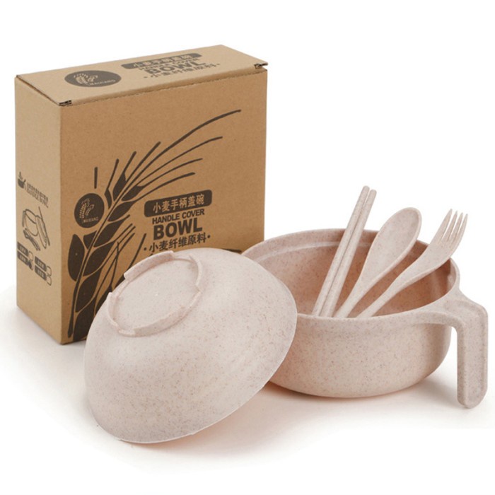 Mangkuk yang terbuat dari bahan Wheat Straw dan tidak lengket. Bahan Wheat straw merupakan bahan yang terbuat dari serat jerami gandum yang tentunya aman untuk lingkungan dan aman digunakan untuk alas makanan/minuman.
