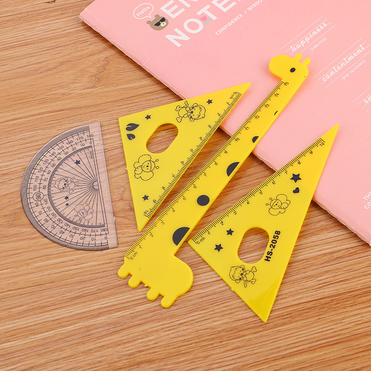 Set Penggaris Plastik Serbaguna dengan Motif Kartun 15 cm – Yellow