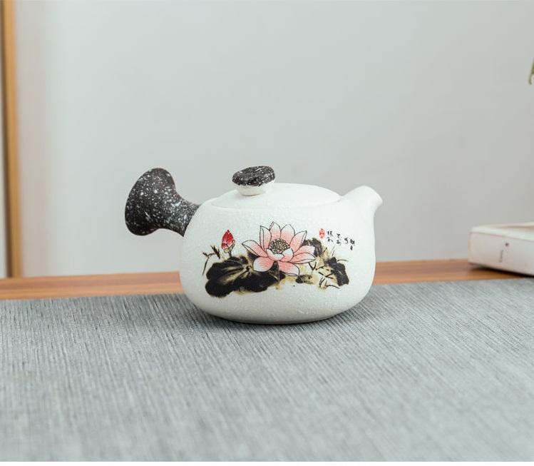 Pegang gagang anti panas dan tuangkan teh ke dalam cangkir.
