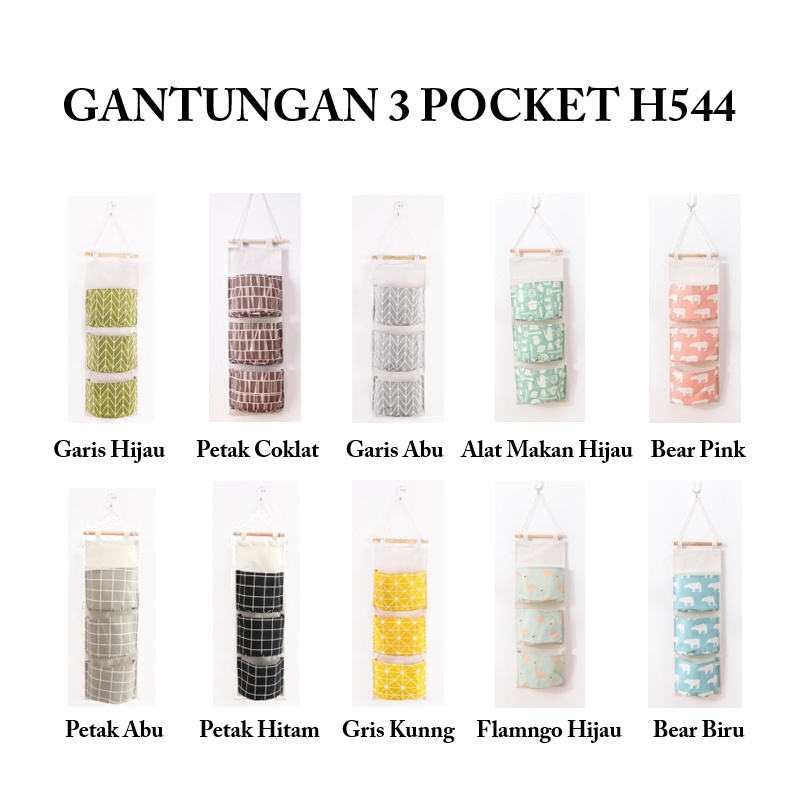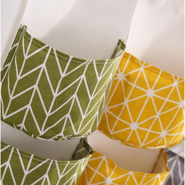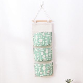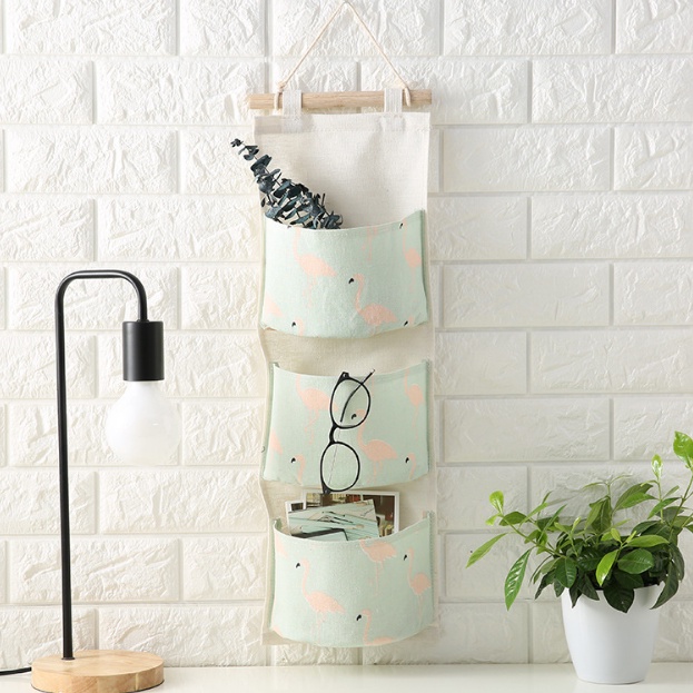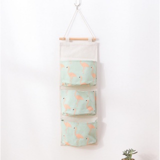 Storage Bag Gantung Kain Kanvas Organizer Storage 3 Sekat Korea – Hijau Flamingo