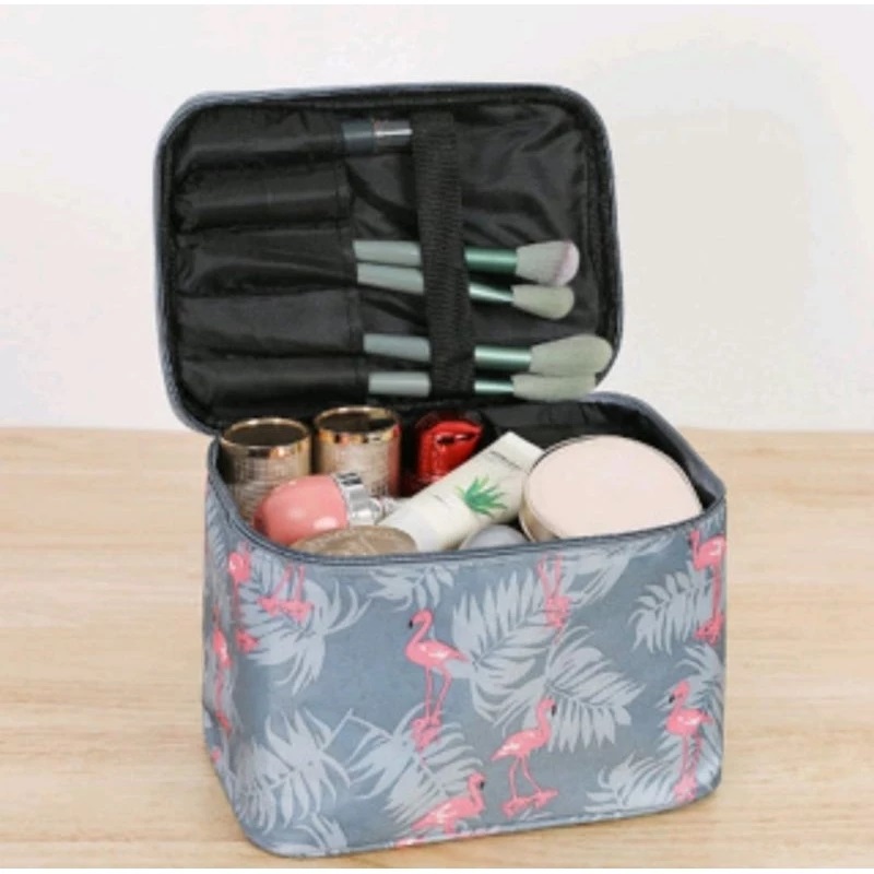 Tas Kosmetik Pouch Make Up Travel Motif Lucu 21x15x16 cm Multi Fungsi – Flamingo Abu