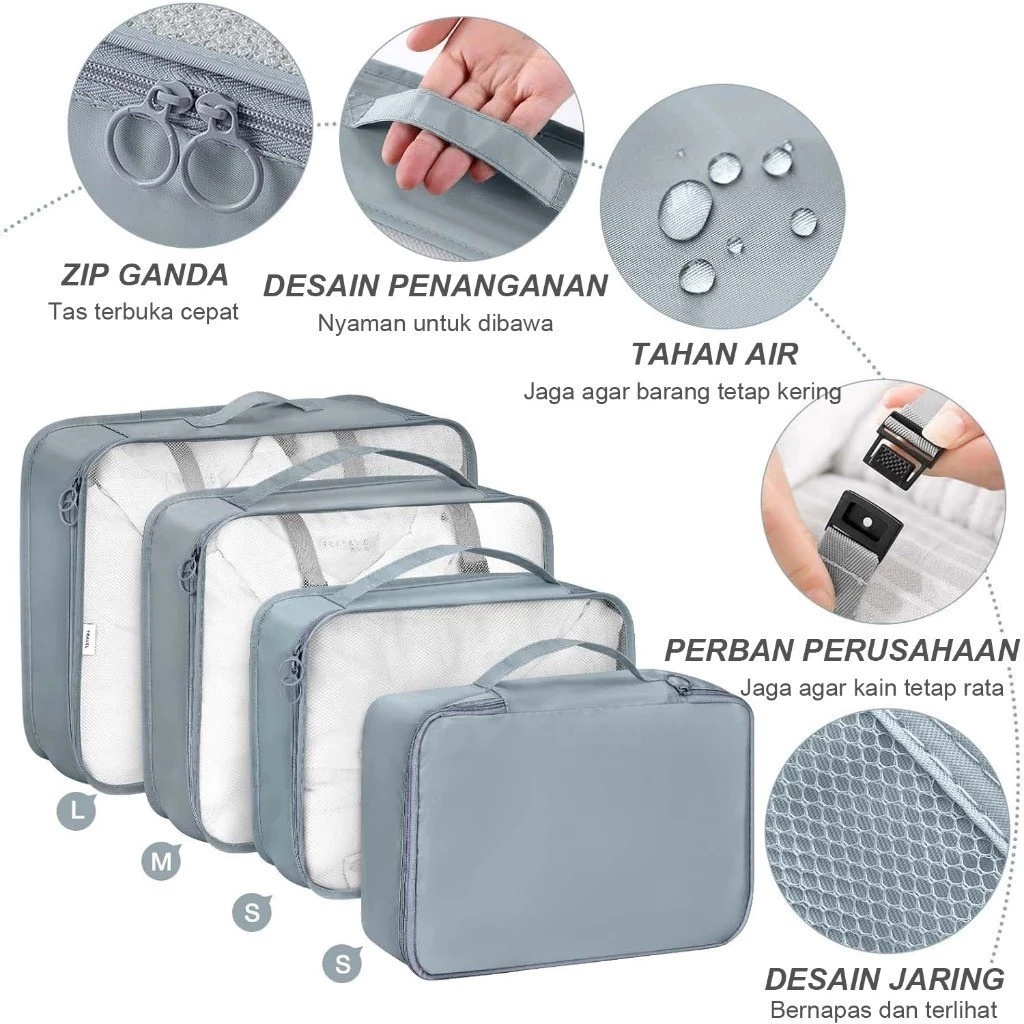 Tas travel organizer 7IN1 merupakan set penyimpanan praktis yang dirancang untuk membantu menata barang bawaan agar lebih rapi dan terorganisir saat bepergian. Terdiri dari beberapa tas dengan ukuran berbeda, cocok untuk menyimpan pakaian, celana, pakaian dalam, sepatu, aksesoris, hingga perlengkapan kecil lainnya. Membantu menghemat ruang di koper atau tas dan memudahkan pencarian barang selama perjalanan.