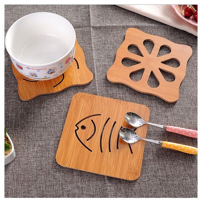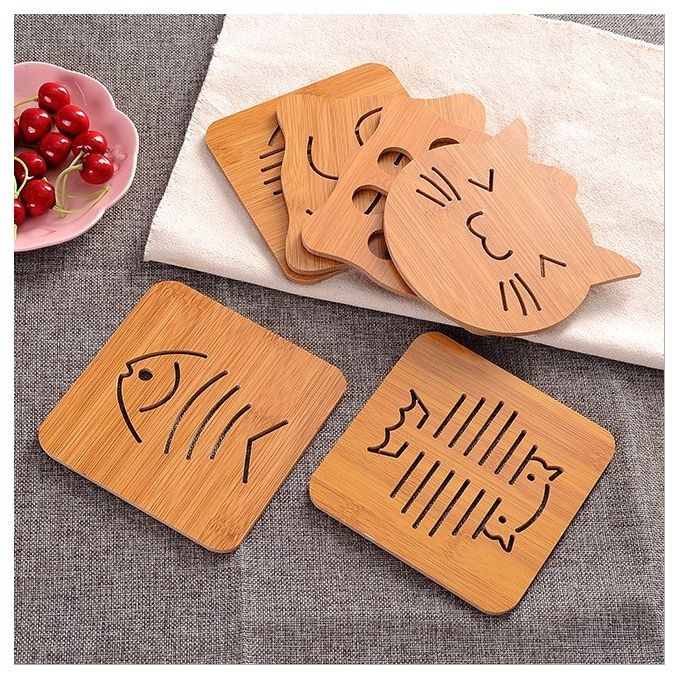 Tatakan kayu alas panci mangkok piring anti panas yang sangat unik dengan motif yang lucu mempercantik dekorasi dapur.