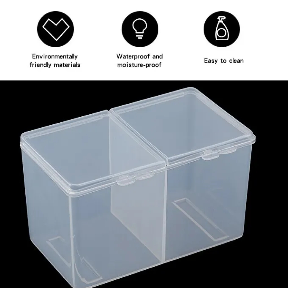 Tempat kapas makeup dua sekat ini memudahkan penyimpanan kapas, cotton buds, dan alat makeup lainnya agar tetap rapi dan higienis.