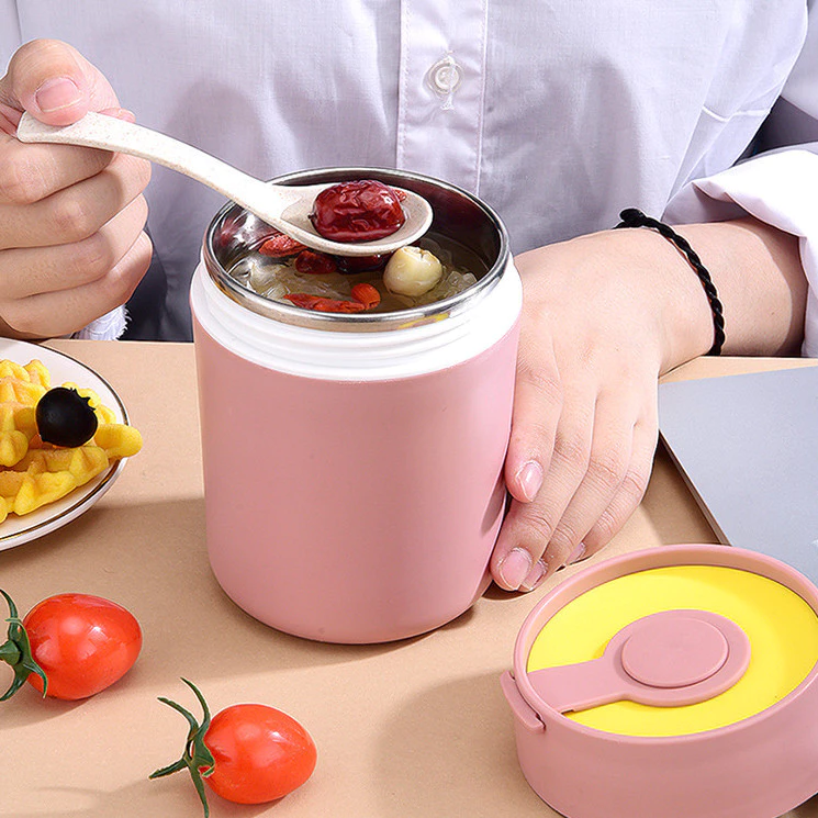 Tempat Makan Bubur Sup Mini Portable solusi praktis untuk menyimpan dan membawa makanan hangat seperti sup atau bubur Dengan desain yang kompak dan tahan tumpah.
