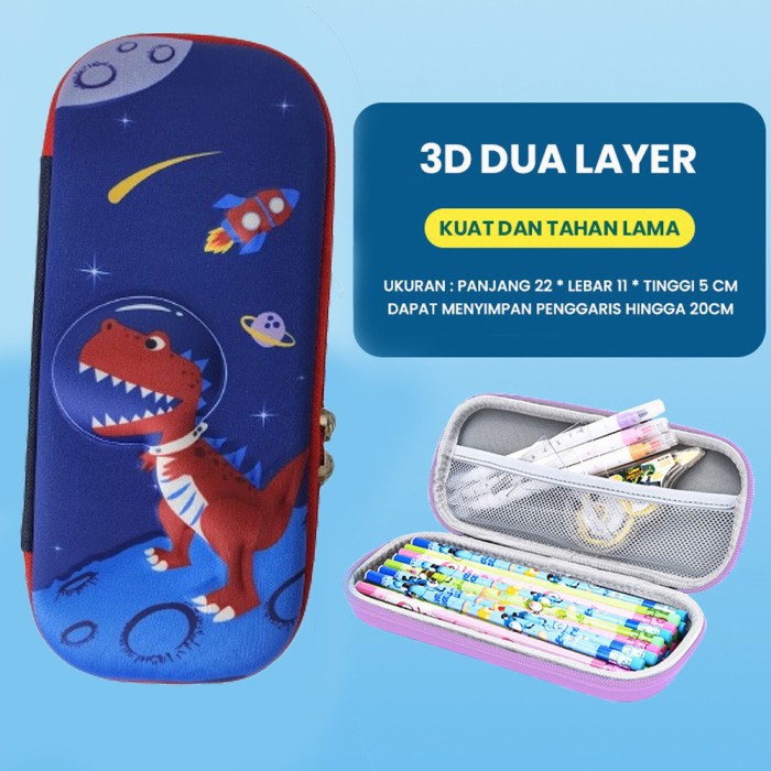 Kotak pensil motif karakter 3d timbul bahannya kokoh, halus dan tahan air muat banyak alat tulis.