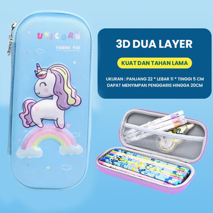 Kotak pensil motif karakter 3d timbul bahannya kokoh, halus dan tahan air muat banyak alat tulis.