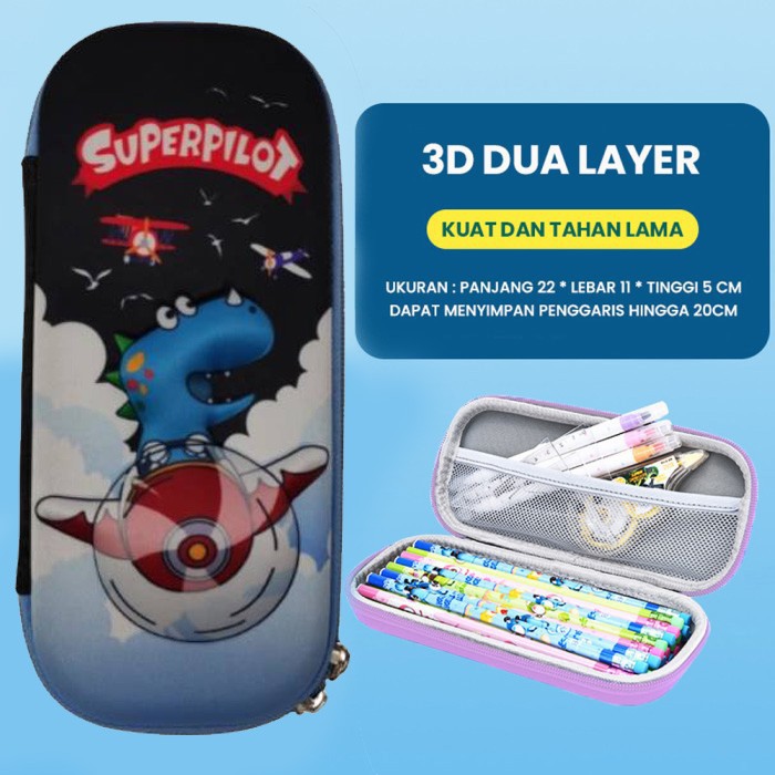 Kotak pensil motif karakter 3d timbul bahannya kokoh, halus dan tahan air muat banyak alat tulis.