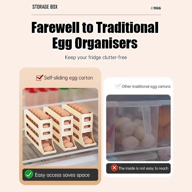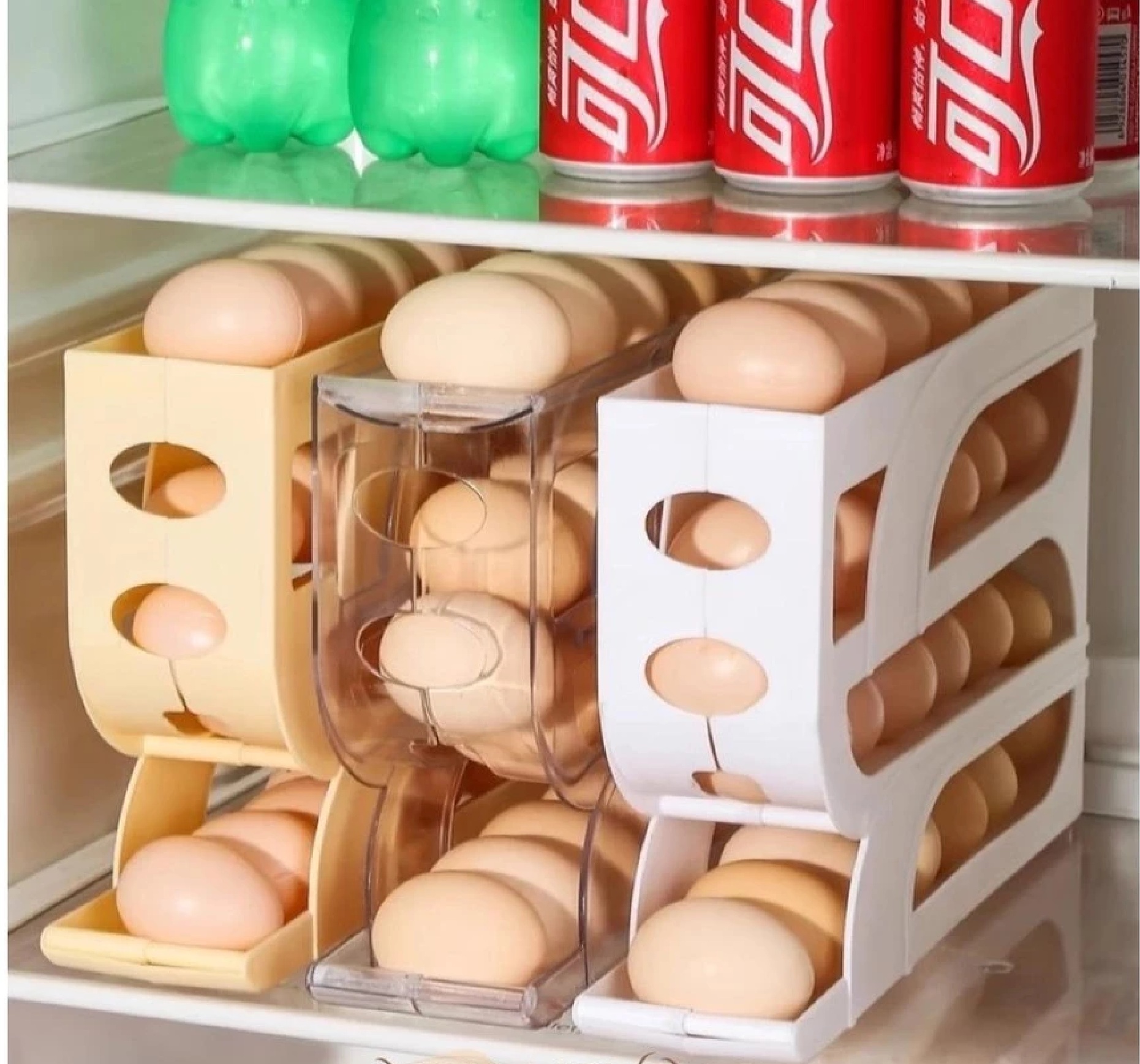 – Kegunaan: Menjaga telur tetap rapi dan aman di kulkas