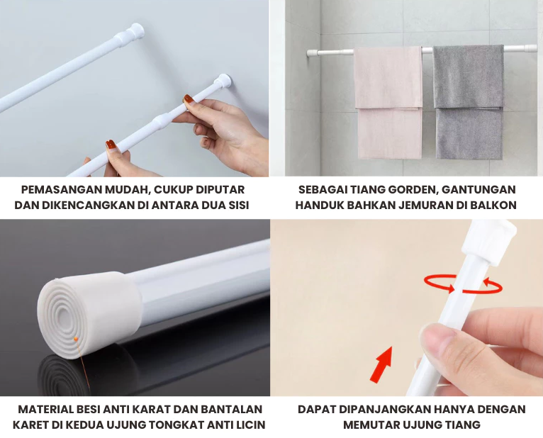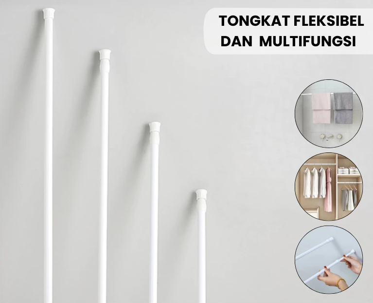 Tongkat fleksibel serbaguna untuk gorden, tirai, shower, hingga jemuran baju
