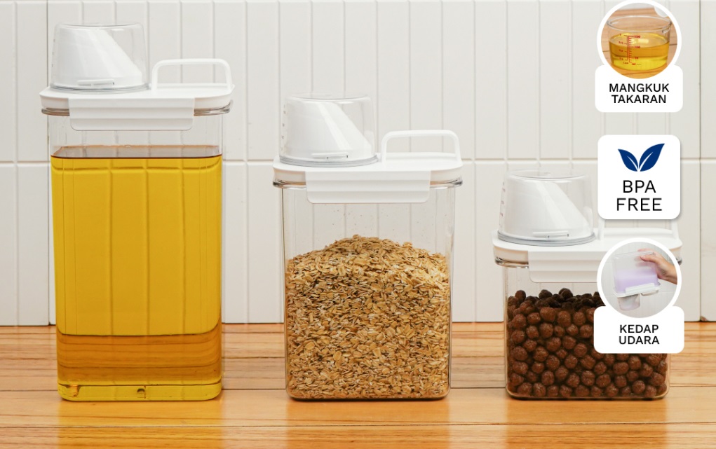 Toples Penyimpanan Makanan Plastik Acrylic dengan Gelas Ukur Serbaguna adalah solusi penyimpanan makanan yang praktis dan efisien untuk dapur Anda.