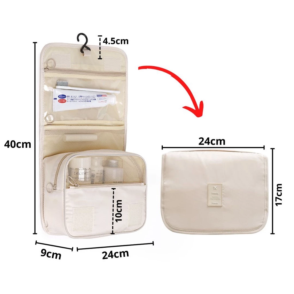 Tas penyimpanan serbaguna dengan banyak sekat untuk menyimpan berbagai perlengkapan saat bepergian.