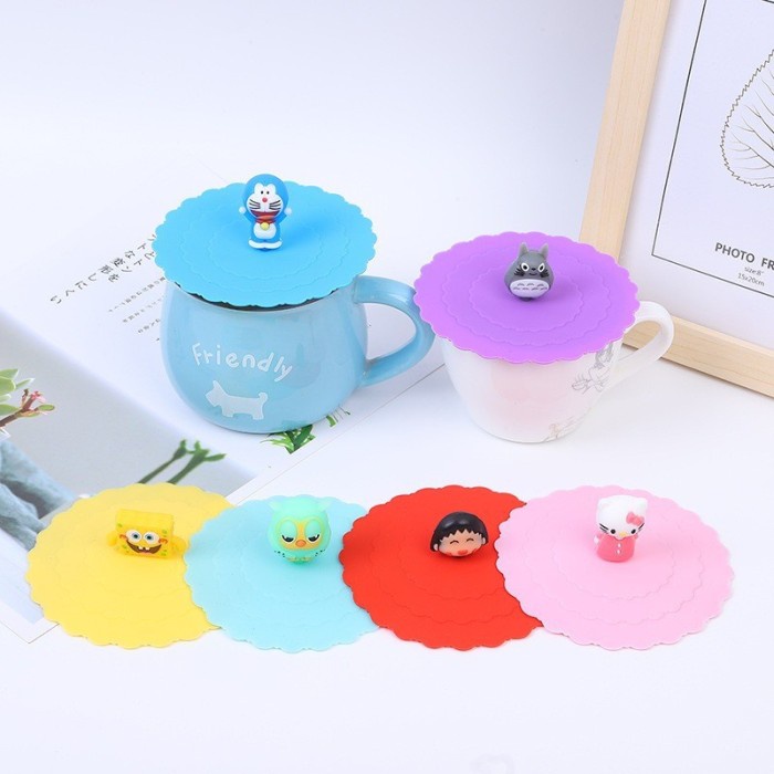Tutup Gelas Cangkir Karet Silikon Karakter Anti Debu
