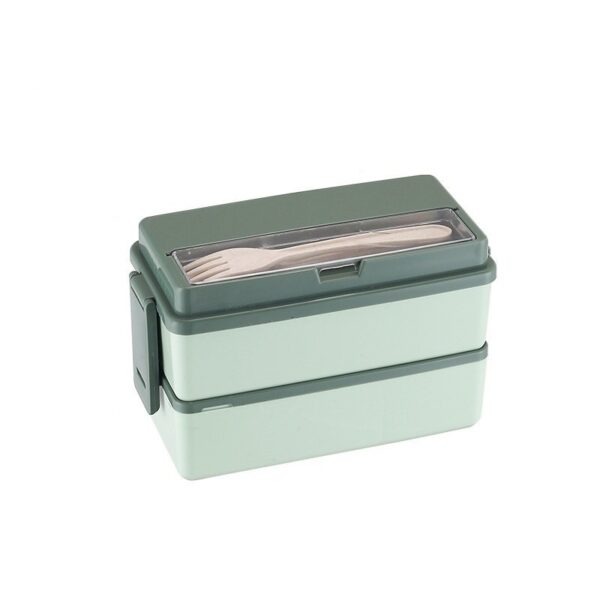 Tempat Makan Susun 2 Tingkat Sekat Sendok Garpu Plastik Jerami – Hijau