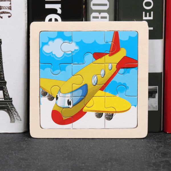 Mainan Edukasi Anak MINI WOODEN PUZZLE Jigsaw Kubus Kayu 10.5×10.5cm – Pesawat
